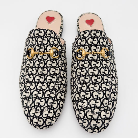 Gucci Monogram Jacquard Princetown Loafers - Size 37