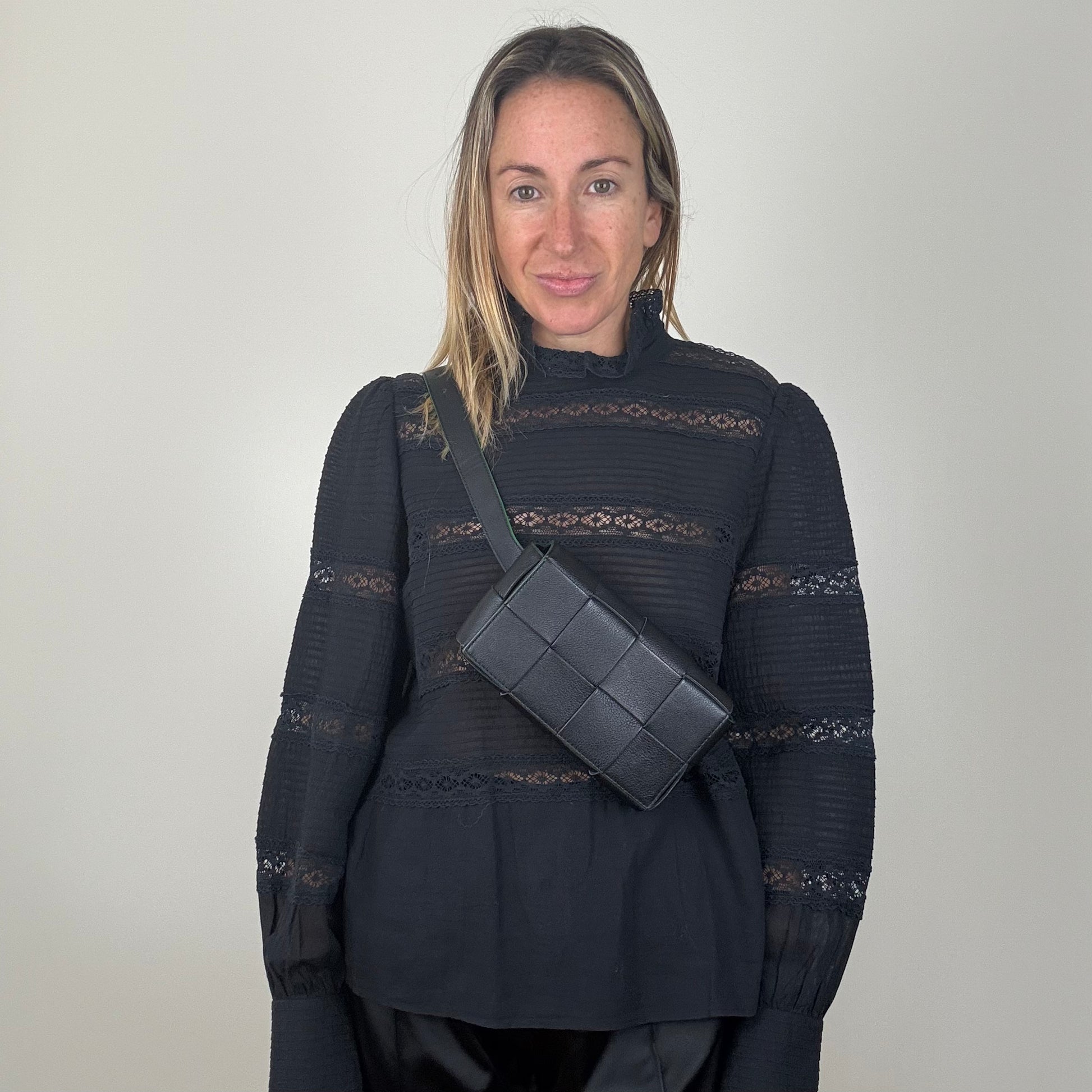 A modern icon from Daniel Lee’s era at the house, the Bottega Veneta Cassette Belt Bag is a masterclass in minimalist luxury. Crafted in supple black leather and featuring the brand’s signature maxi Intrecciato weave, this piece delivers instant sophistication in a compact, hands-free silhouette. Its adjustable belt strap allows for versatile styling — wear it cinched at the waist, slung across the chest, or over the shoulder for an effortless, contemporary look.