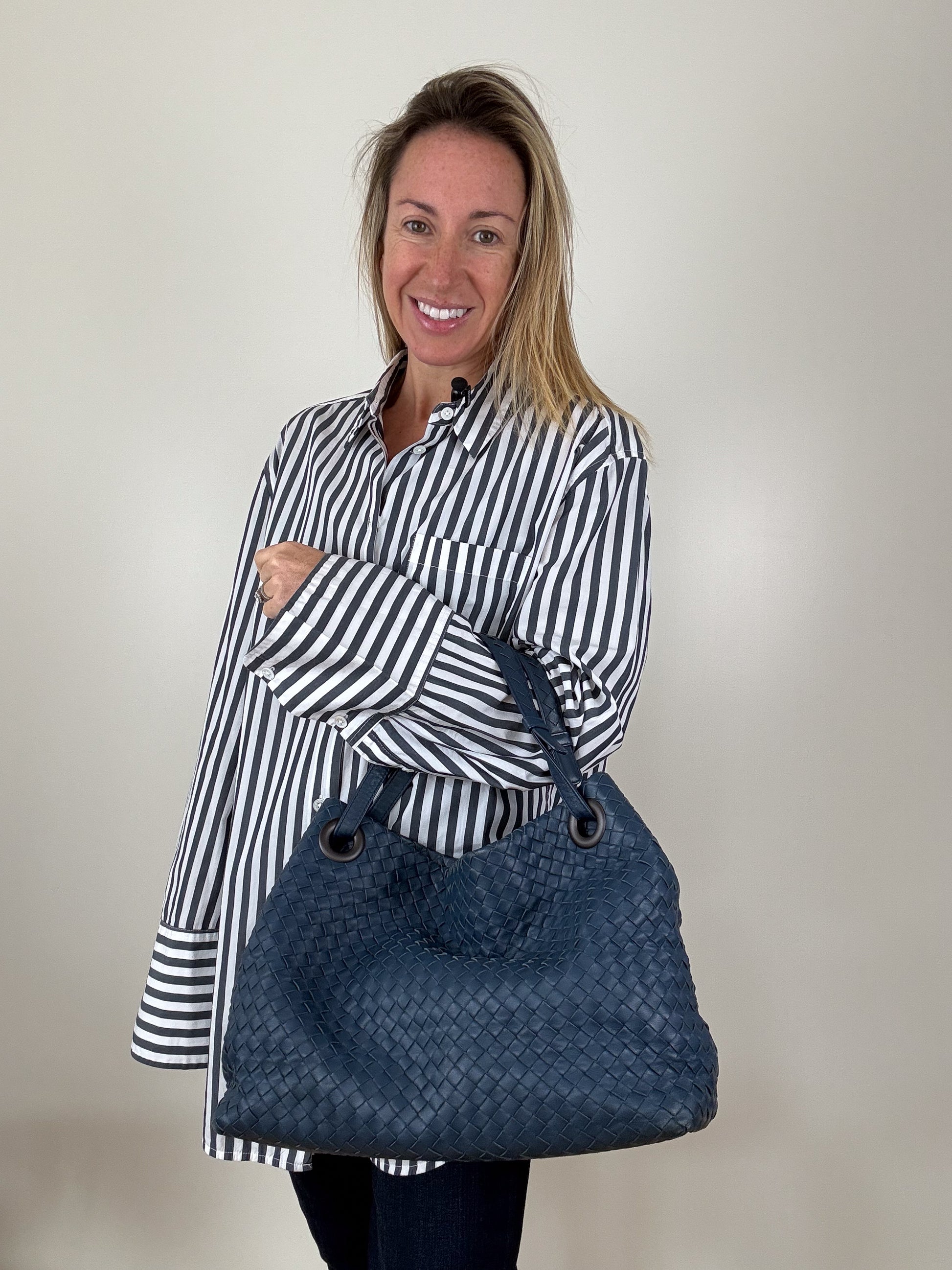 Crisp, contemporary, and effortlessly chic — this preloved Equipment oversized striped shirt redefines classic shirting with a modern twist.