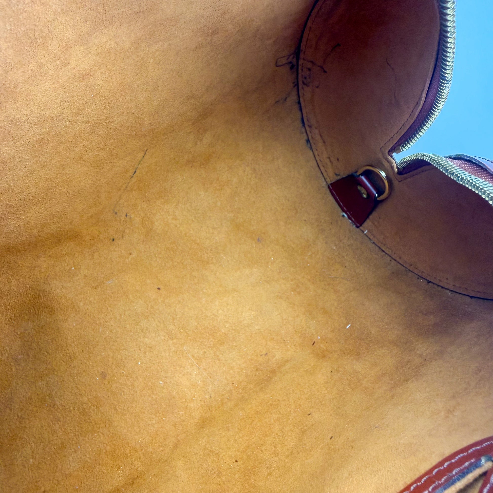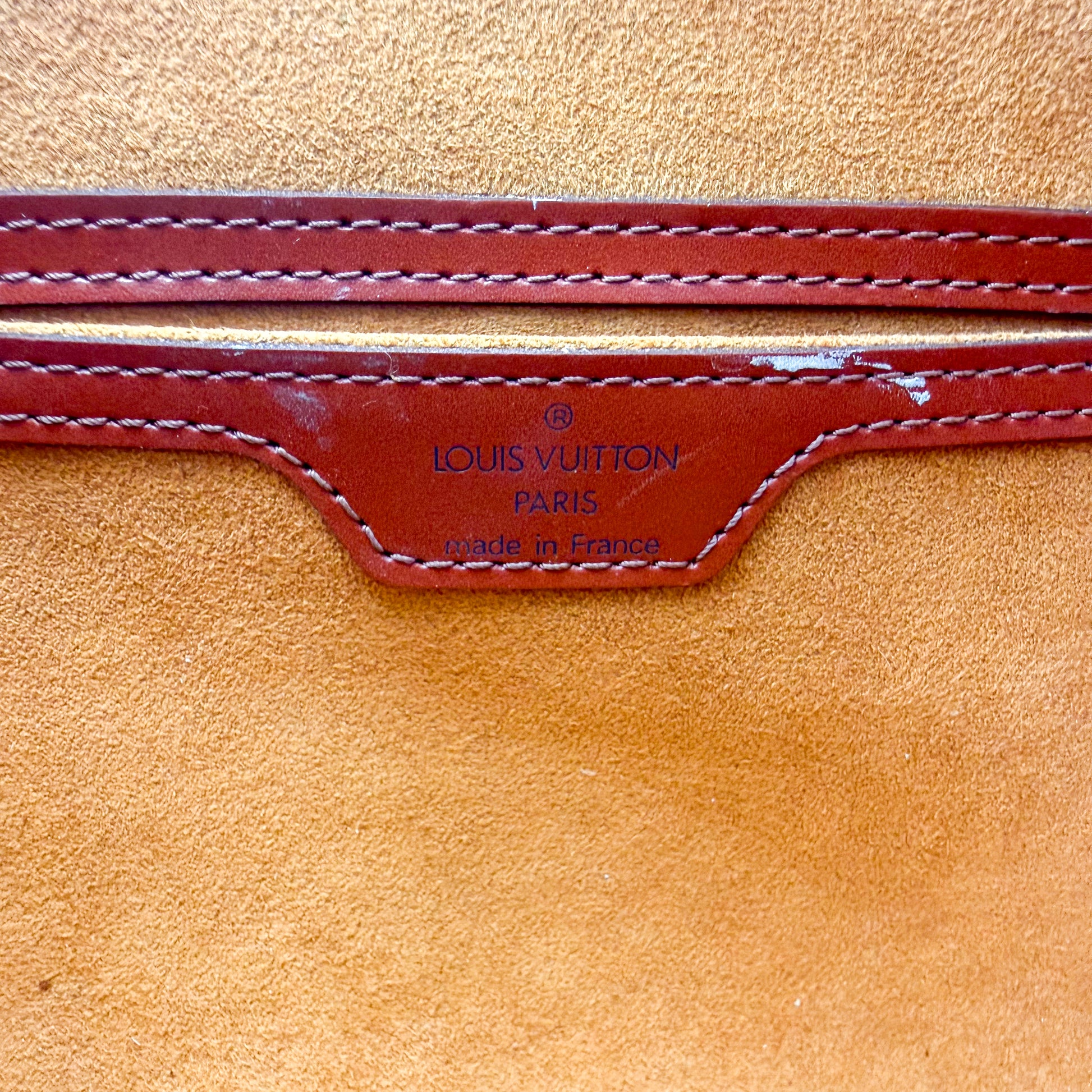 Crafted from Louis Vuitton’s signature textured Epi leather, this beautifully sculpted silhouette features a cylindrical shape, gold-tone hardware, and the discreet embossed LV logo. The piece comes complete with its matching Epi leather accessory pouch, making it as functional as it is refined.
