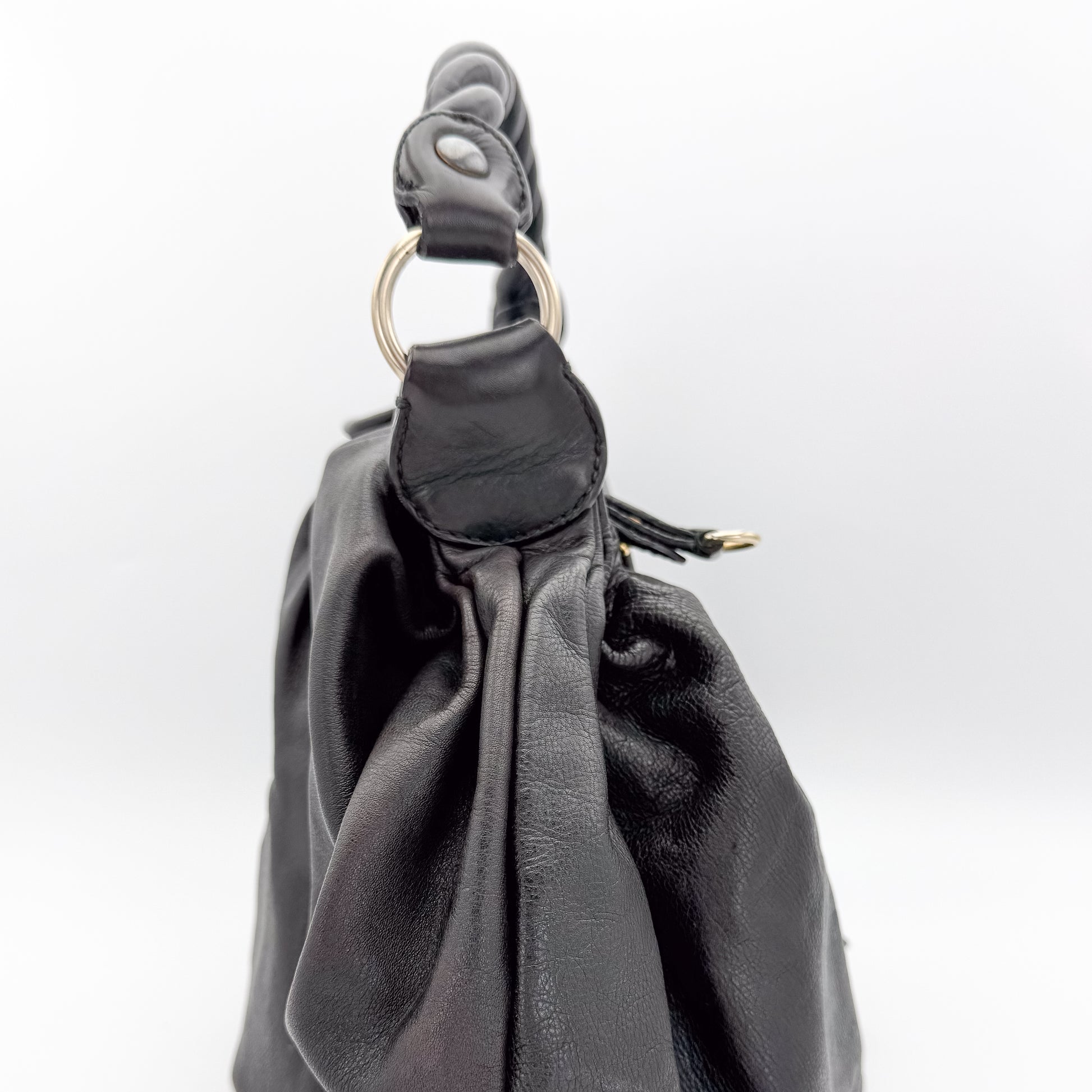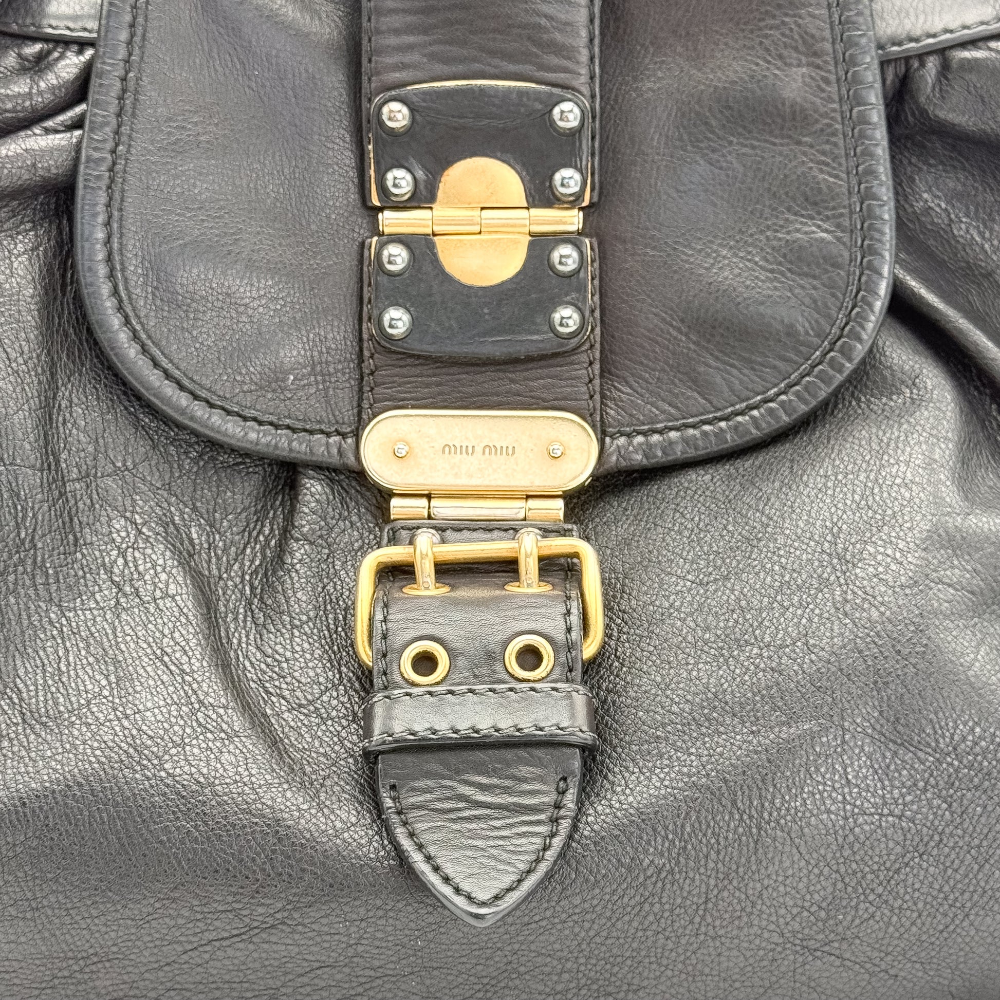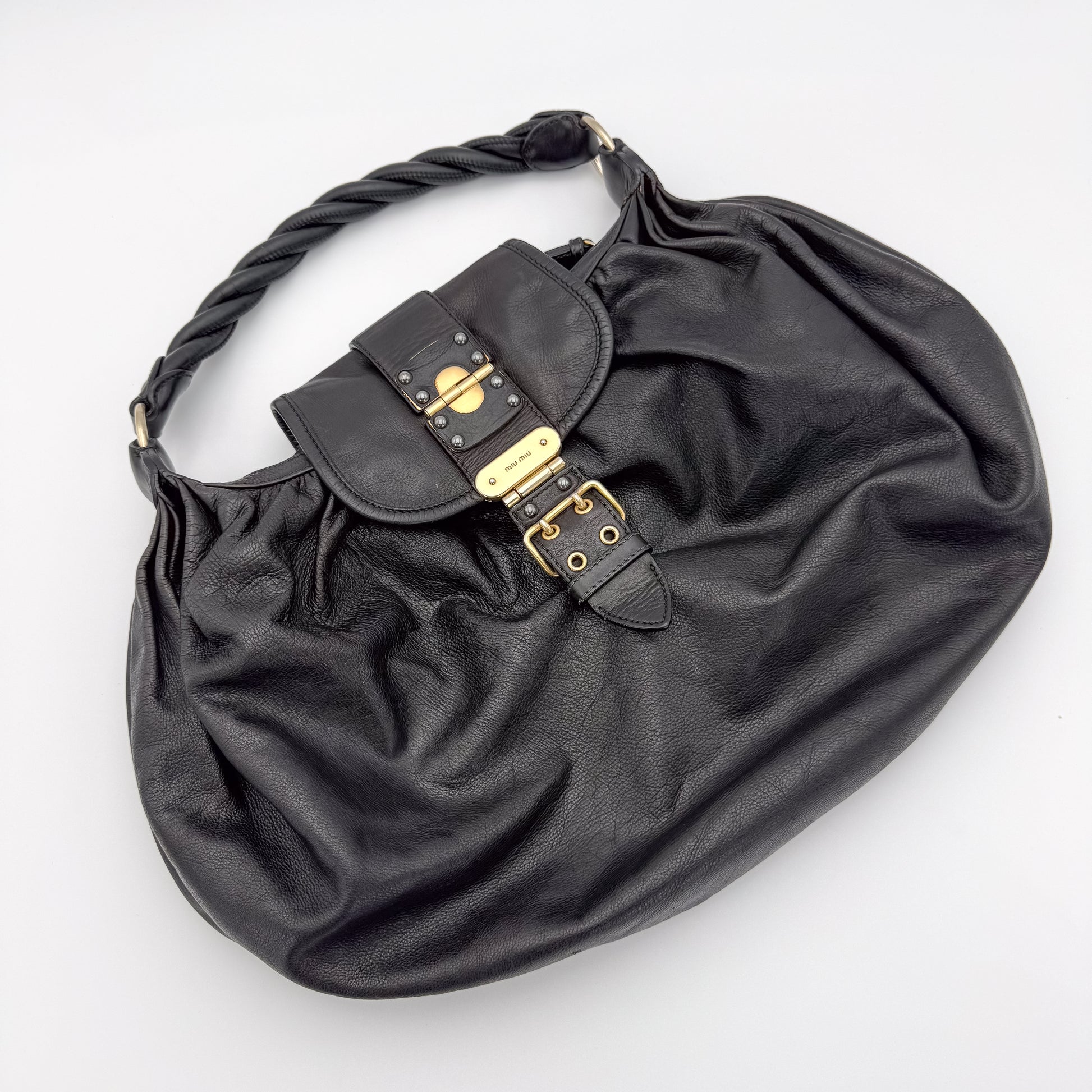 A celebrated icon from Miu Miu’s archives, the Coffer Bag in supple black leather epitomises the brand’s signature blend of femininity and modern edge. Crafted in Italy, this beautifully soft bag features the distinctive ruched detailing and the iconic plaited top handle — hallmarks of Miu Miu’s effortlessly chic aesthetic.