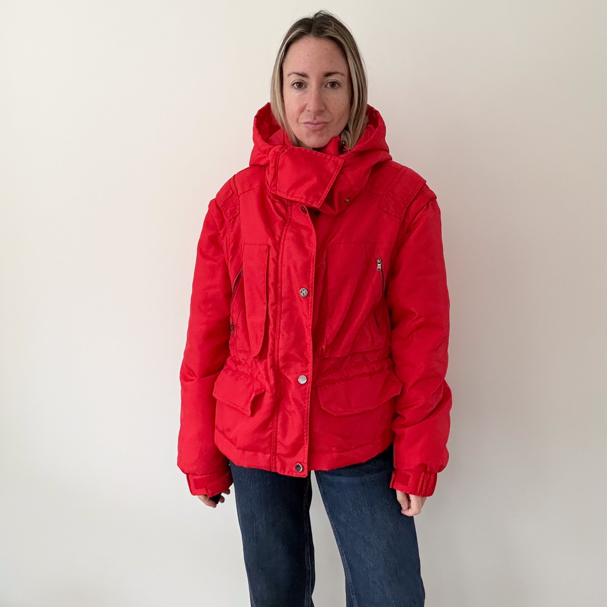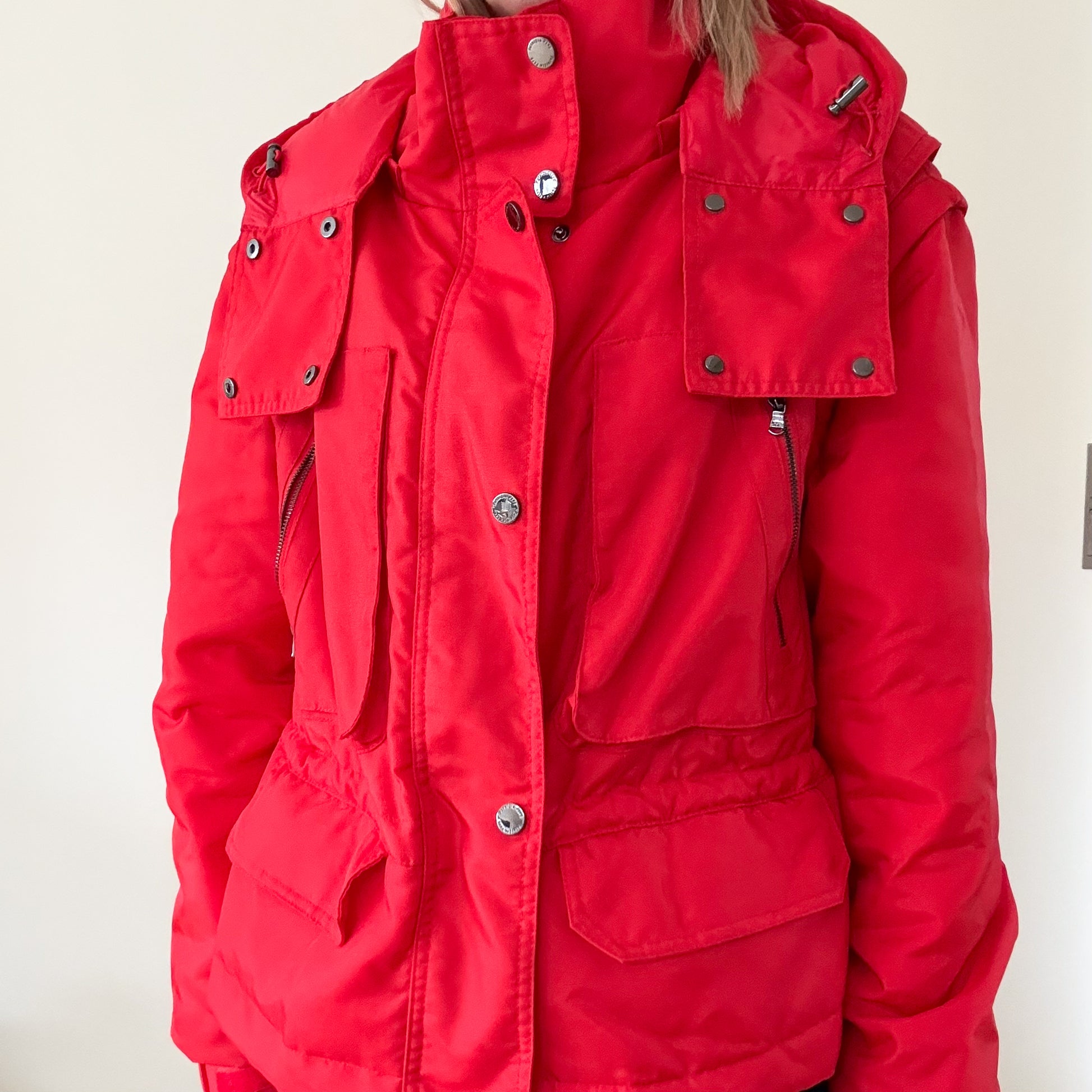 Finished with elasticated cuffs and a smooth, lightly lustrous fabric, this jacket balances practicality with Italian design sensibility. The bold red colour adds impact to neutral winter wardrobes, pairing effortlessly with denim, knitwear and boots. A versatile and stylish choice for colder months, this preloved Patrizia Pepe puffer jacket is perfect for those seeking statement outerwear with timeless appeal.