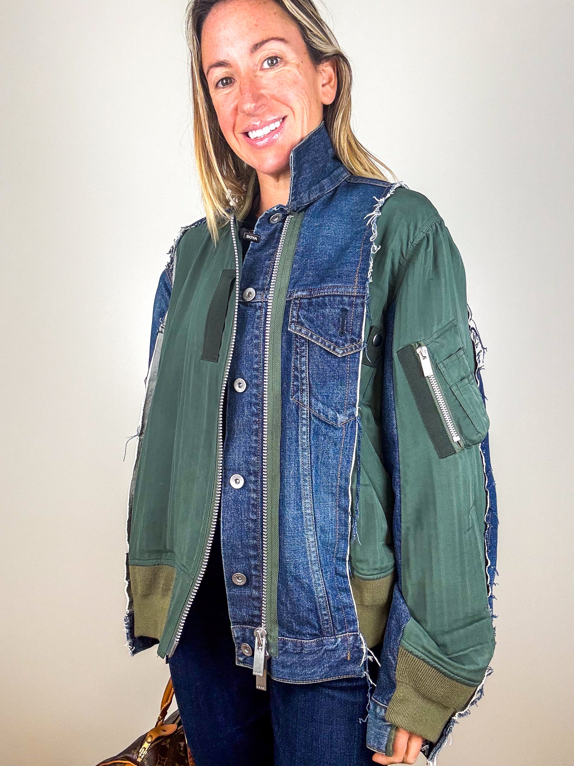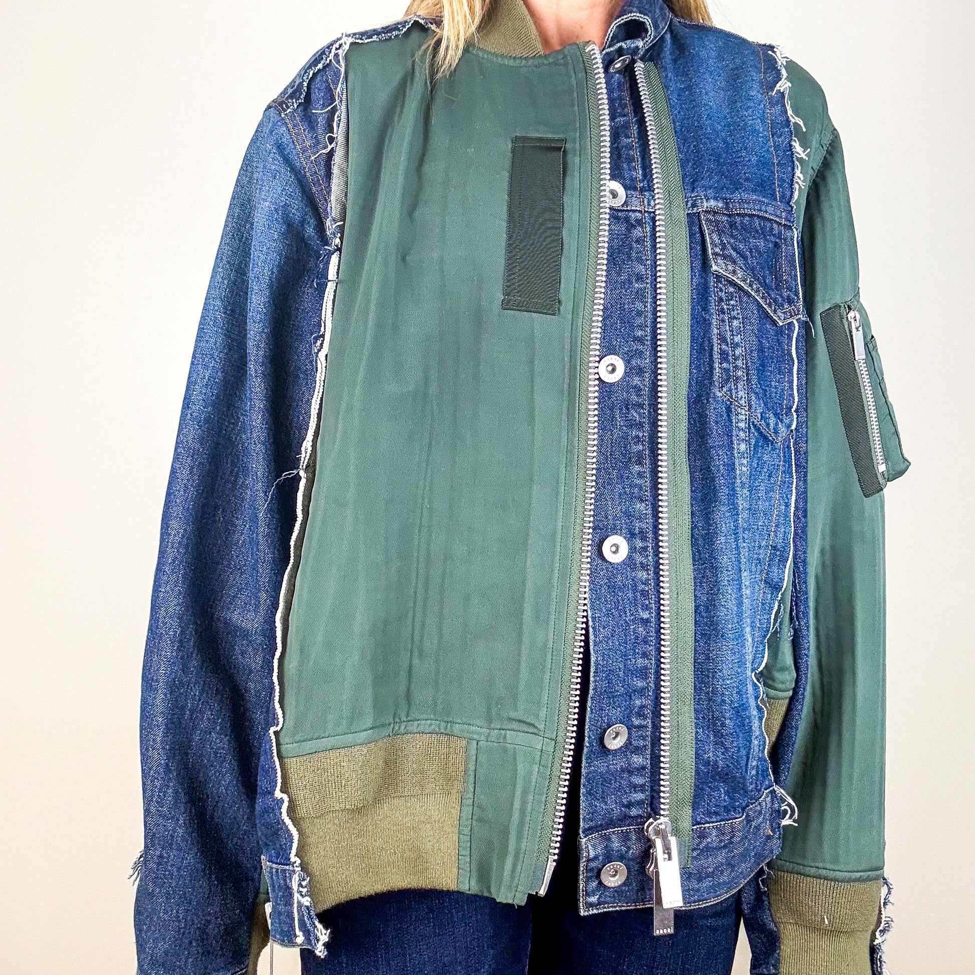 Sacai Denim & Khaki Panelled Jacket - Size 1