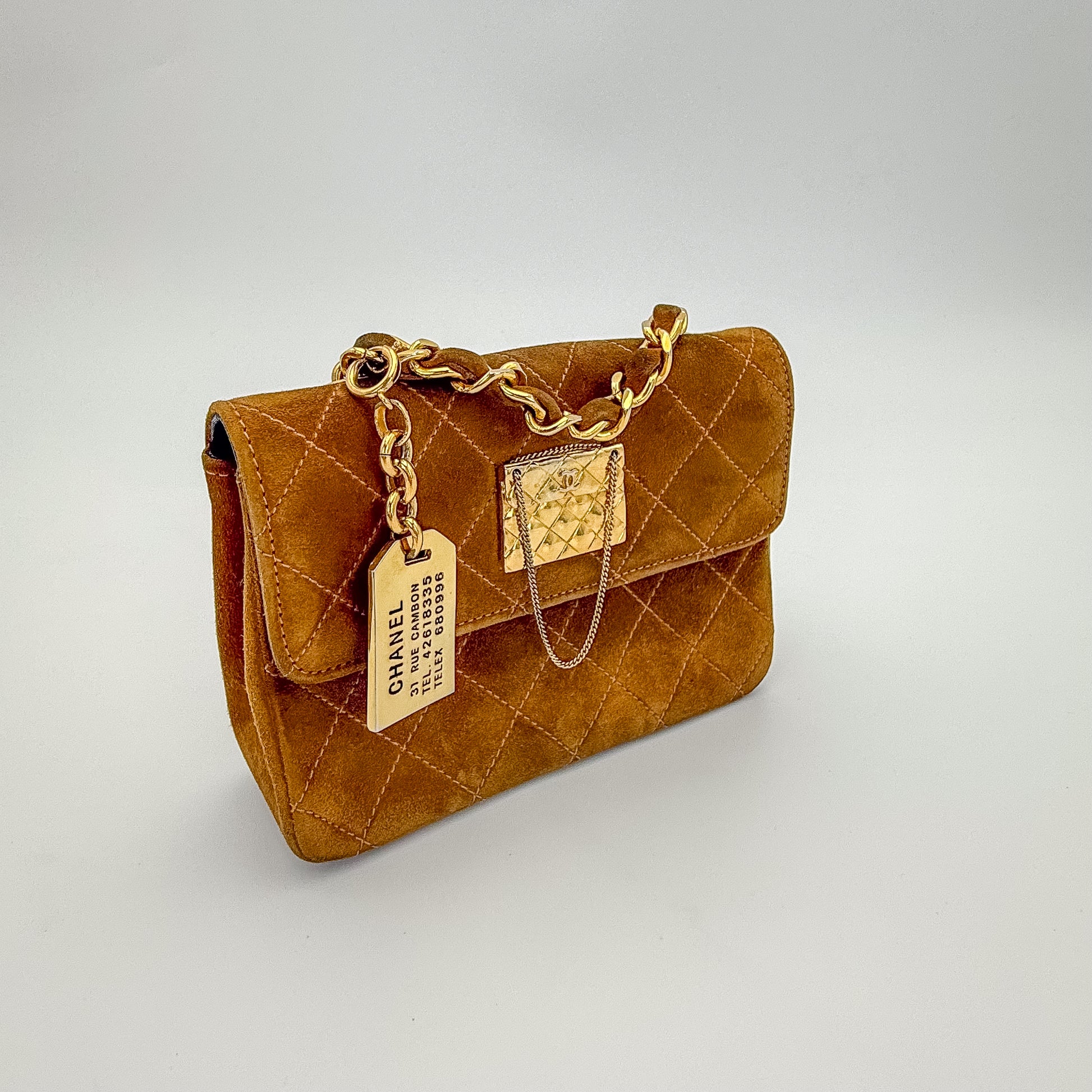 Rare Chanel Vintage Genuine Suede Chain Bag