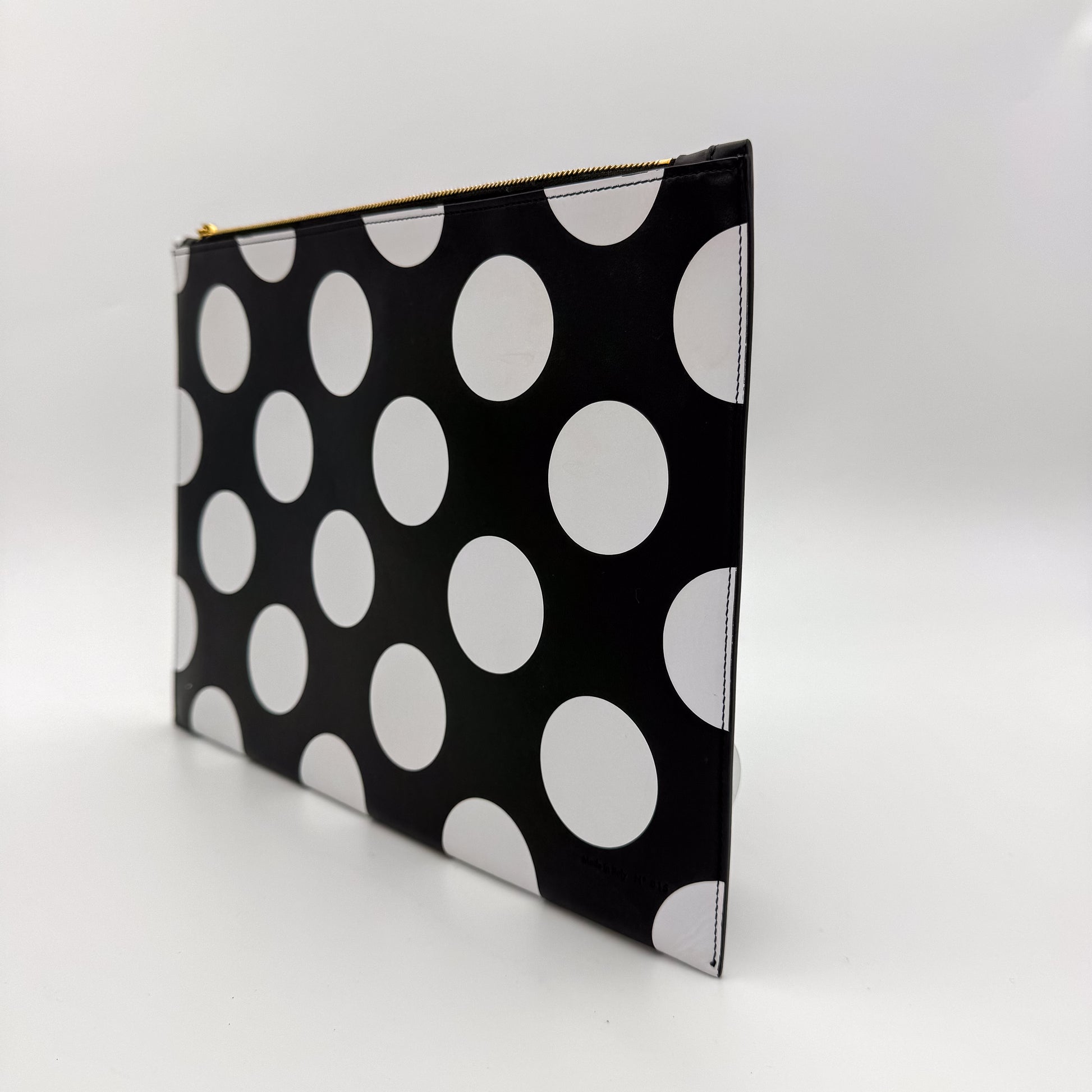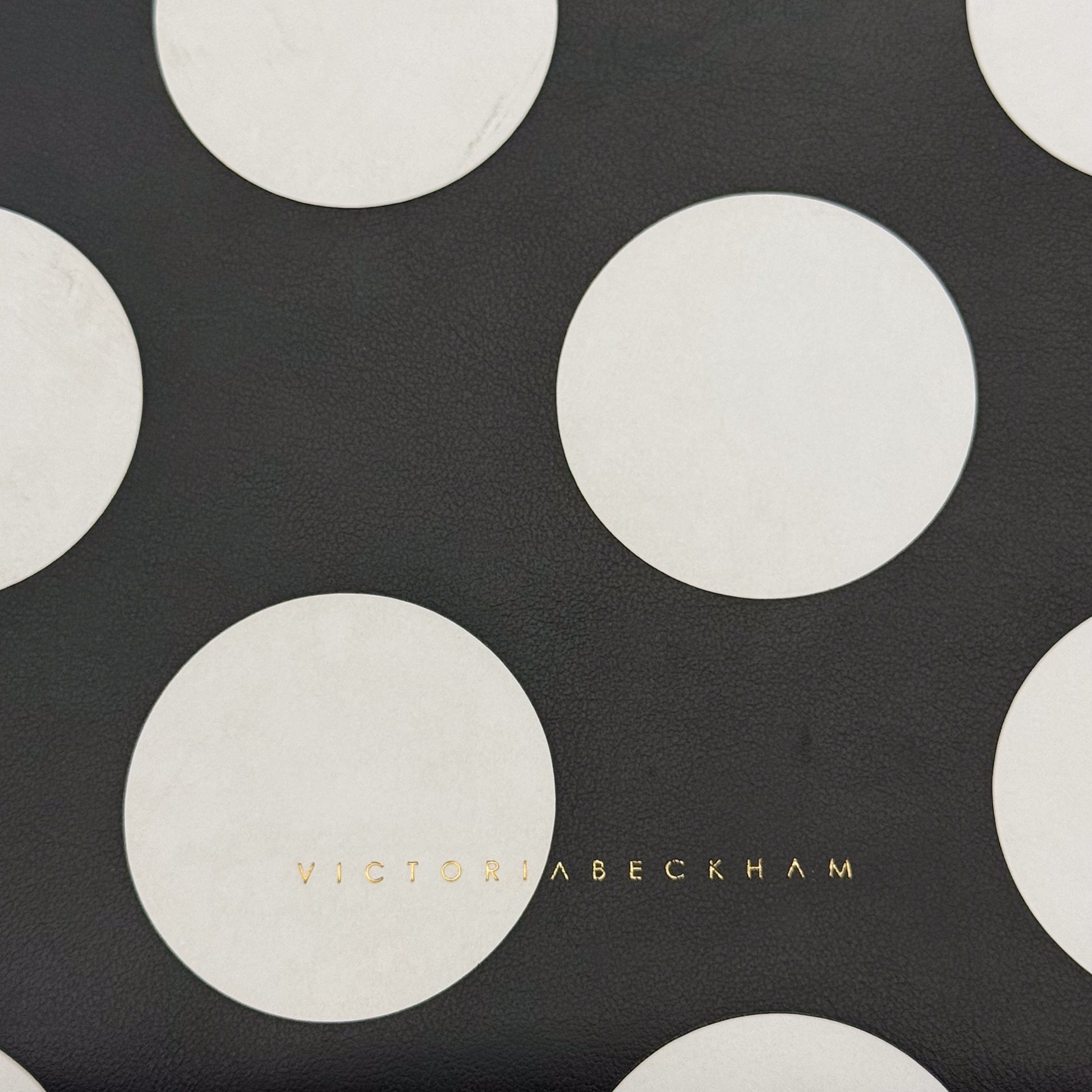 Sleek, playful, and unmistakably refined, this Victoria Beckham Polka Dot Zip Pouch brings a contemporary twist to classic elegance. Crafted from smooth leather and adorned with bold white polka dots against a deep black backdrop, the design perfectly encapsulates Victoria Beckham’s sophisticated yet modern aesthetic. The minimalist gold logo detail and polished zip closure add an elevated touch of luxury.